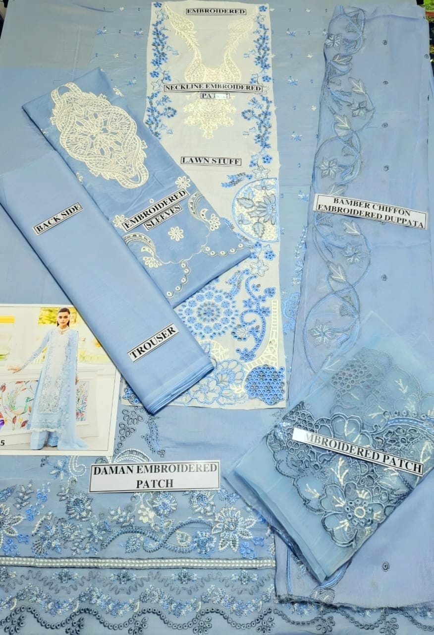 Boring Embroidered Lawn front with daman Patch
