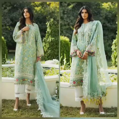 Digital Printed 3 Piece Lawn Suit With Embraided Patches