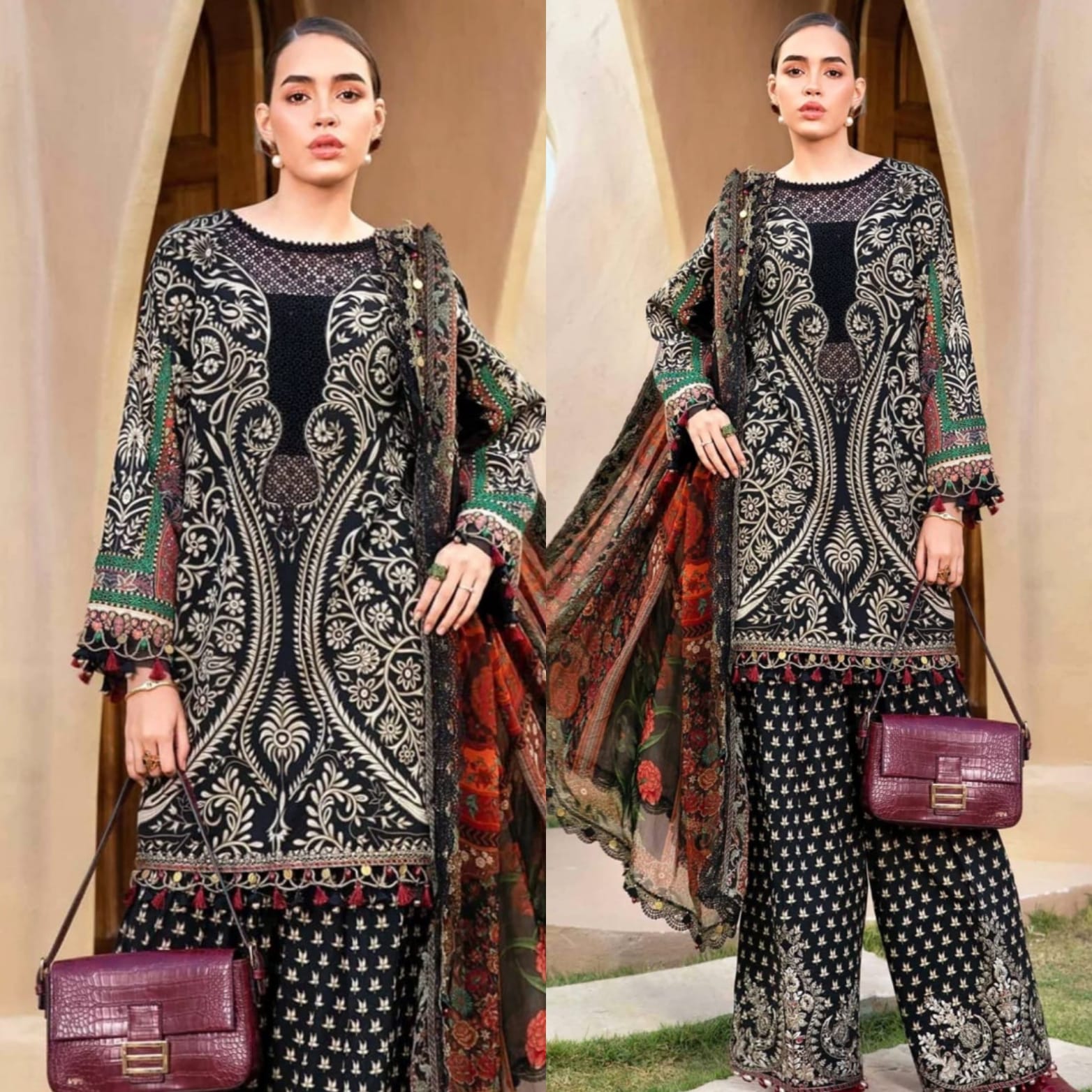 Digital Printed Lawn 3 Piece Suit With Embraided Patches