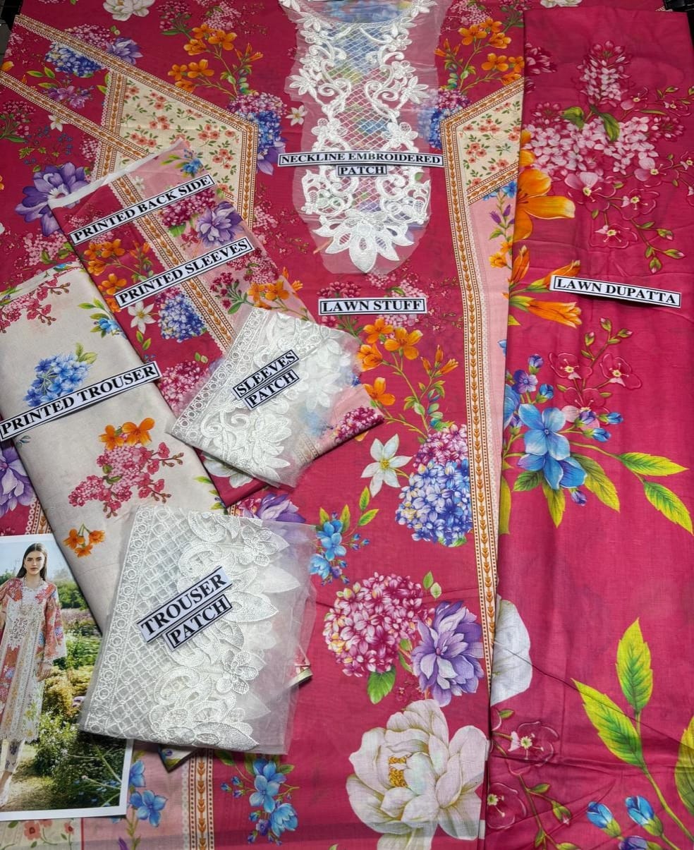 Embraided Lawn 3 Piece Suit With Embraided Patches