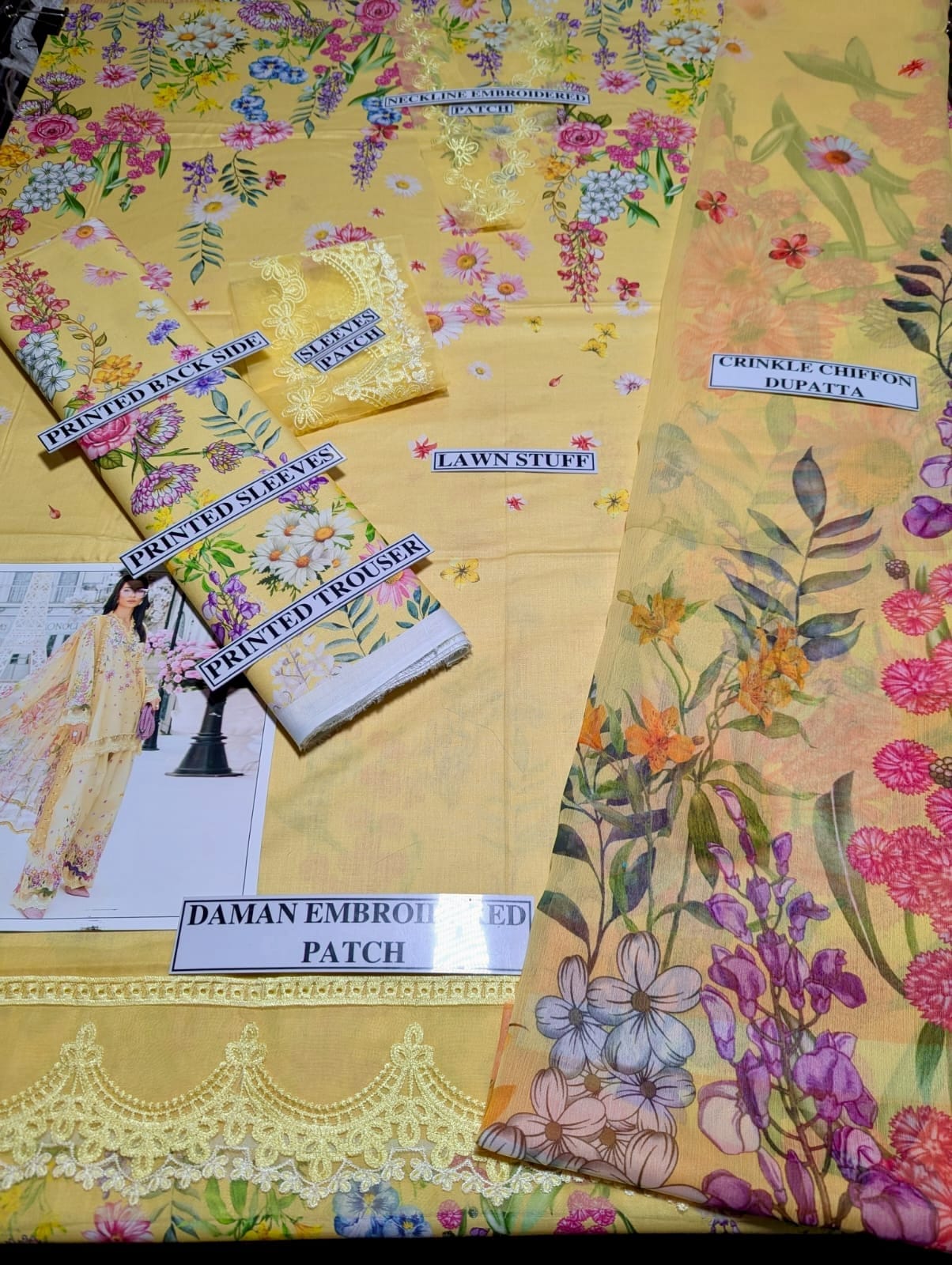Digital Printed Lawn 3 Piece Suit With Embraided Patches
