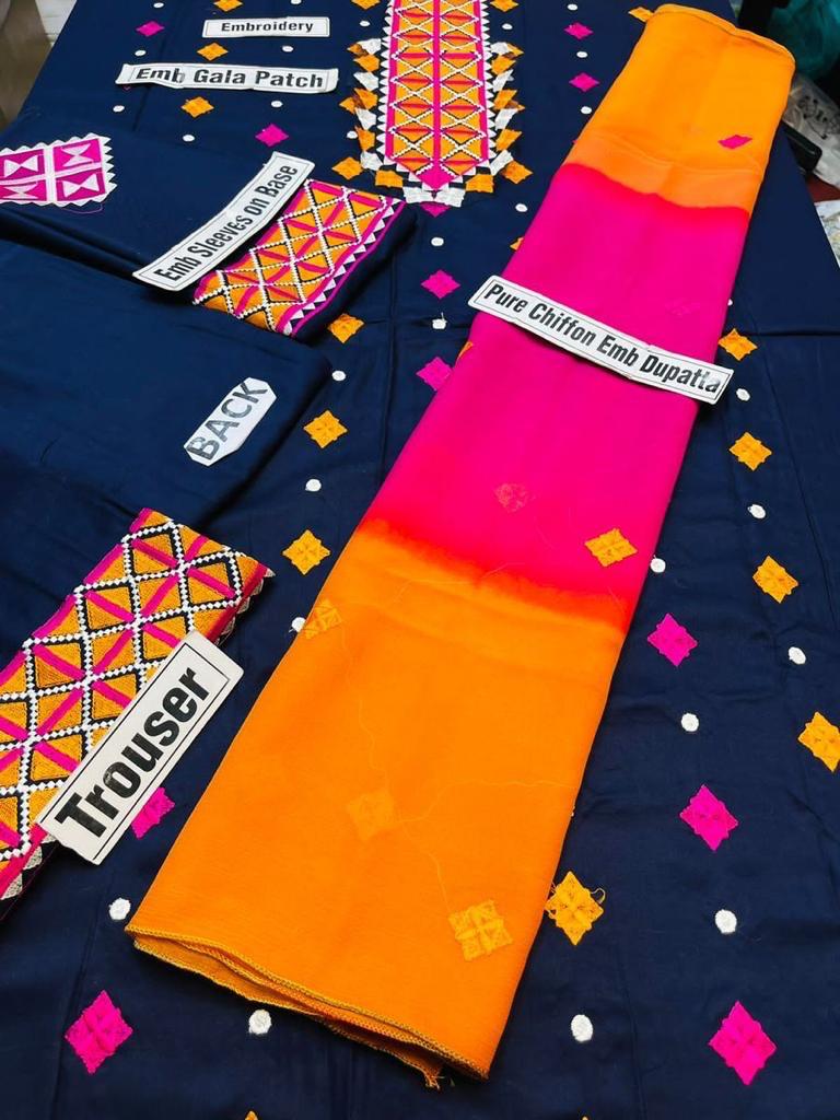Embraided Lawn 3 Piece Suit With Embraided Patches