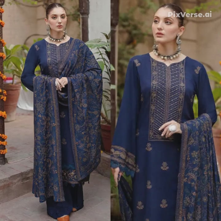 Embraided Dhanak 3 Piece Suit With Wool Shawl