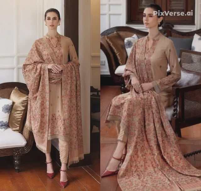 Embraided Dhanak 3 Piece Suit With Wool Shawl