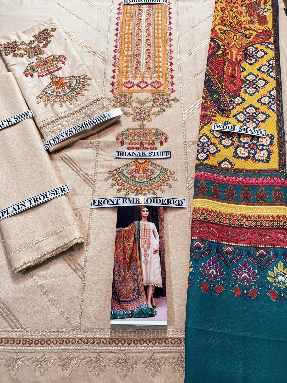 Embraided Dhanak 3 Piece Suit With Wool Shawl