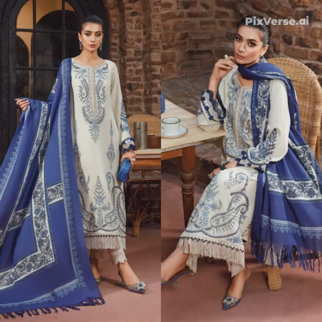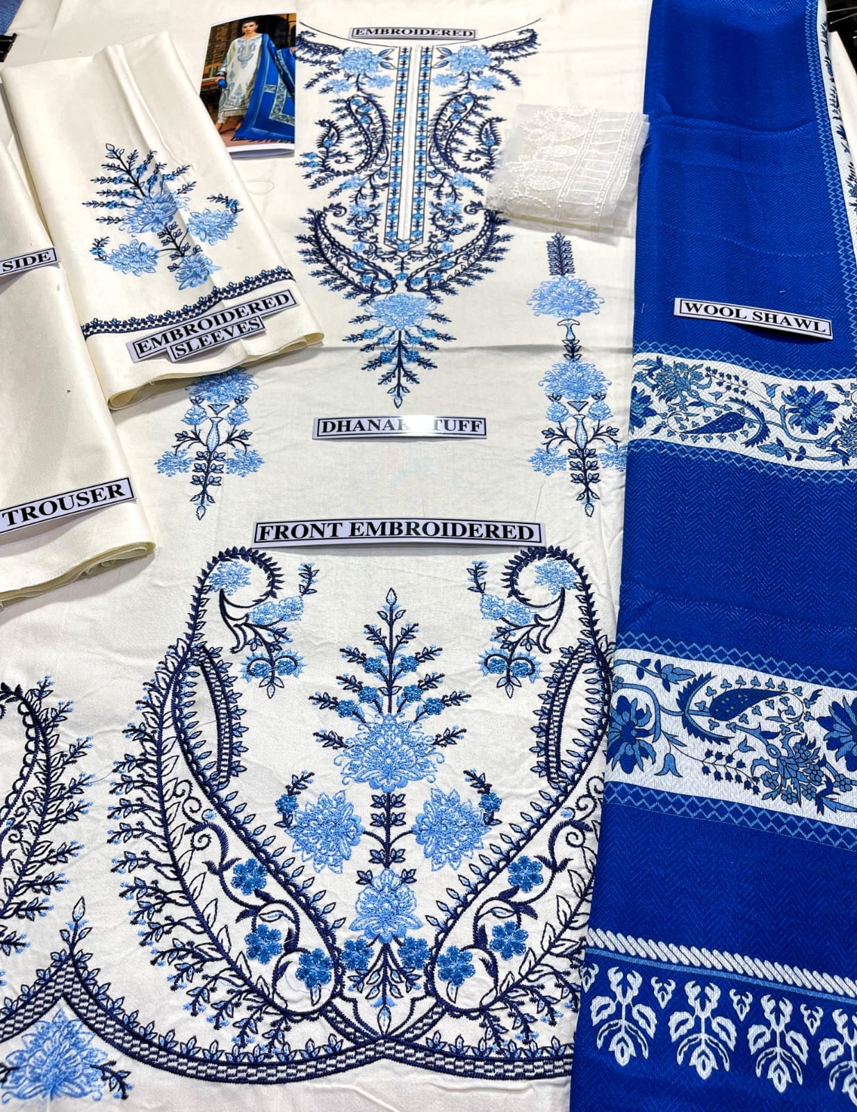 Embraided Dhanak 3 Piece Suit With Wool Shawl