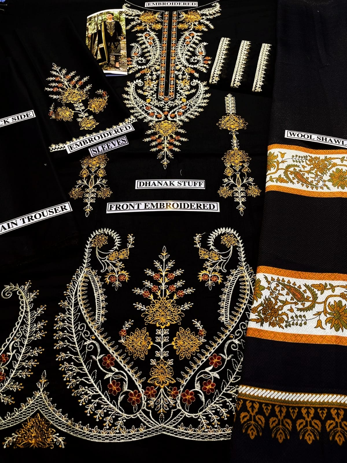 Embraided Dhanak 3 Piece Suit With Wool Shawl
